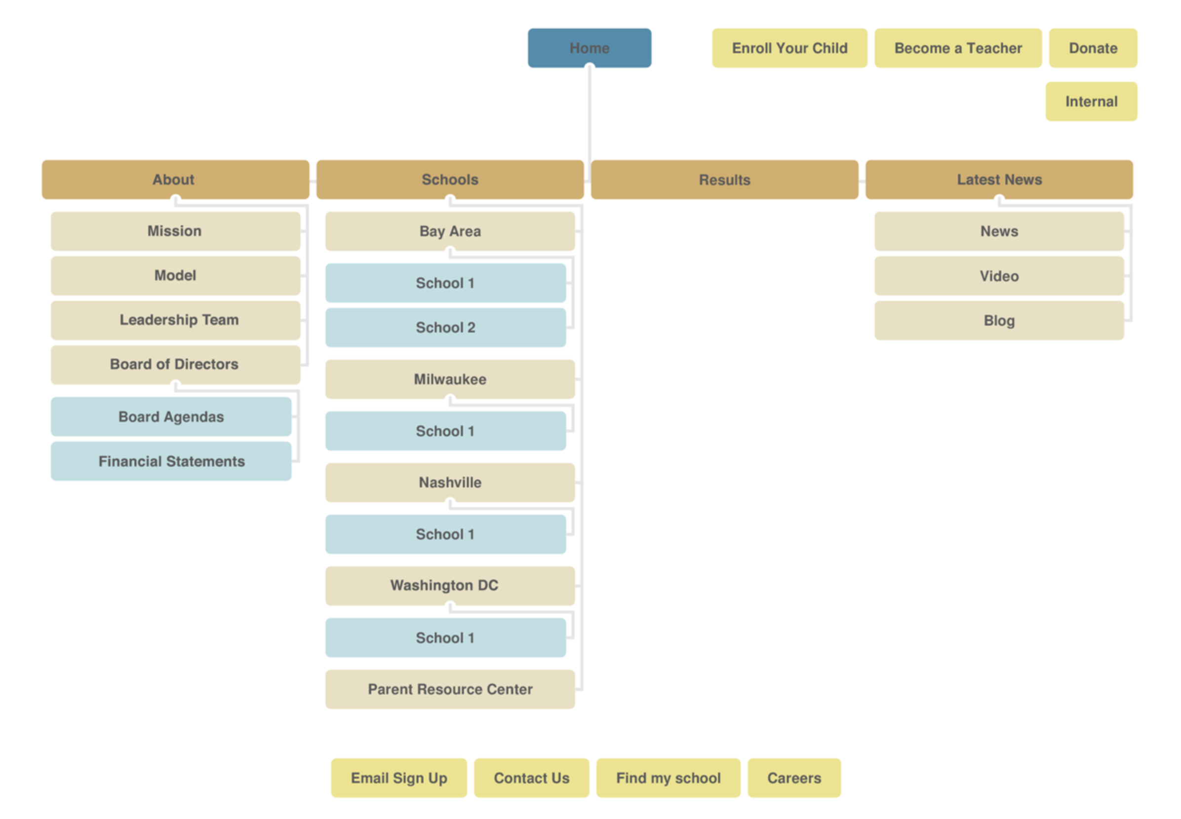 The Rocketship website had to serve the needs of three unique groups of stakeholders: families, teachers and funders. With this in mind, we optimized the wireframes to fit the needs of each of these user groups. We also created a duplicate version of the website for our Spanish-speaking families.